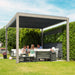 This pergola is the perfect opportunity to extend your outdoor season. Thanks to the tilting double-layer louvres, you can switch between a closed, sheltered space, and an open top to allow sunlight to come flooding in. This means that you can use your outdoor area even when the weather is less than perfect. This pergola ultimately allows you to choose between sitting in sunshine or shade, and provides shelter should it start to rain at a moment's notice - typical of British weather!